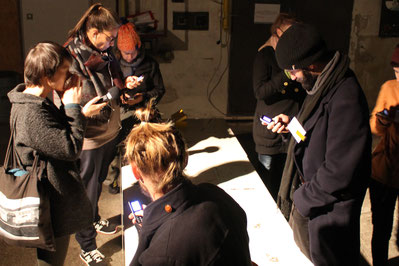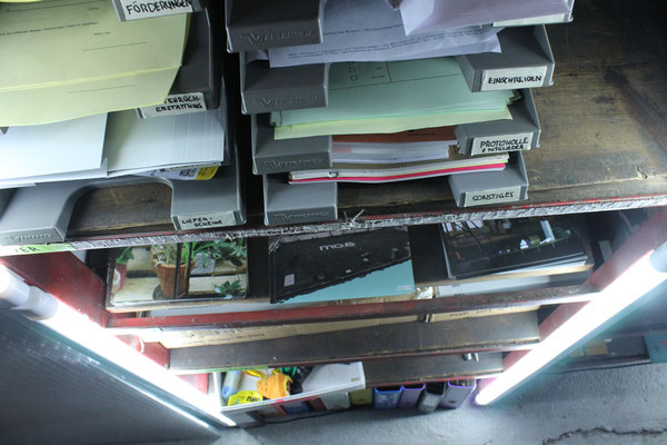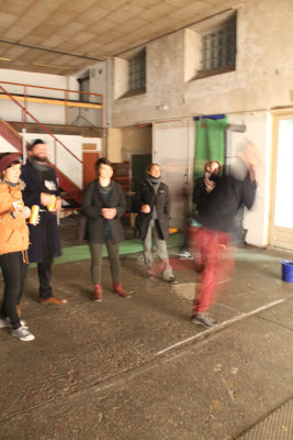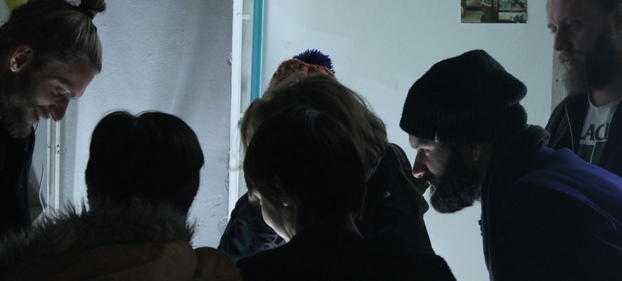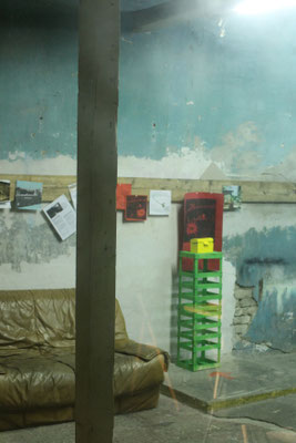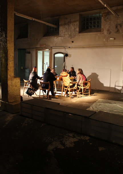 Hey du, wegen gestern: Halle war nicht gekehrt, überall leere Bierflaschen und dreckiges Geschirr in der Abwasch. Muss ja ein Erfolg gewesen sein, eure Vernissage. Hab jetzt schon fast alles gemacht. PS: Team-meeting JETZT: Große Halle, weißer Tisch! Tagesordnung: Visionen für den Raum spinnen.